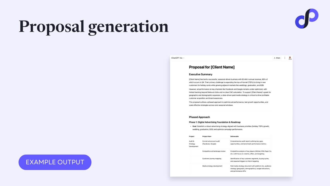 Next, review the inputs provided about the client. They might resemble sales discovery call notes about the client: [insert call notes]