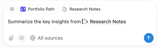 Later, when I want to leverage this “Research Notes” page, I just have to tag it @Research Notes:
